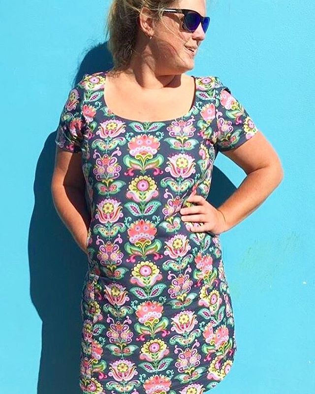 I met Laeti in New Zealand last year and when she asked to be a tester, I knew she would do a great job. She ended up making the small on the top and grading out to a medium at the bottom. Due to the loose fit of the dress she decided that next time she could just get away with a small. This dress does not have any zippers and is meant to be a pull over dress. If you prefer to wear more fitted garments, I would suggest adding back darts to bring it in at the back.